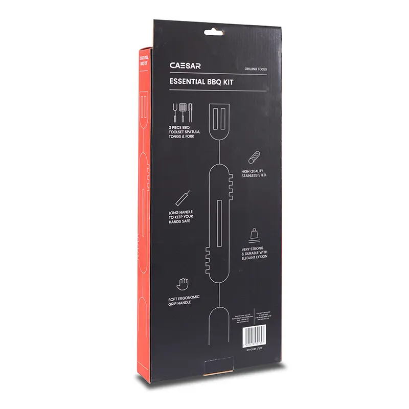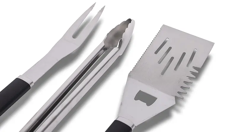 סט אביזרי גריל איכותי הכולל תרווד (הופכן), מלקחיים ומזלג בשר – כל מה שצריך לצלייה מקצועית ונוחה.