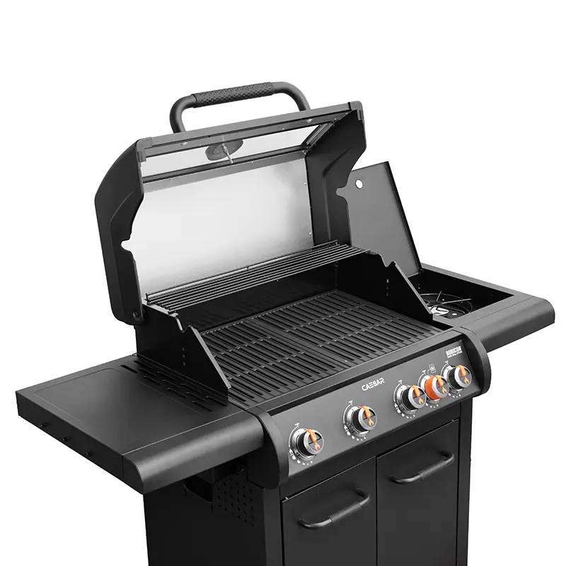 4 מבערי נירוסטה, כירת צד עוצמתית ומערכת צלייה חכמה לחוויית גריל מושלמת בכל חצר/מרפסת.