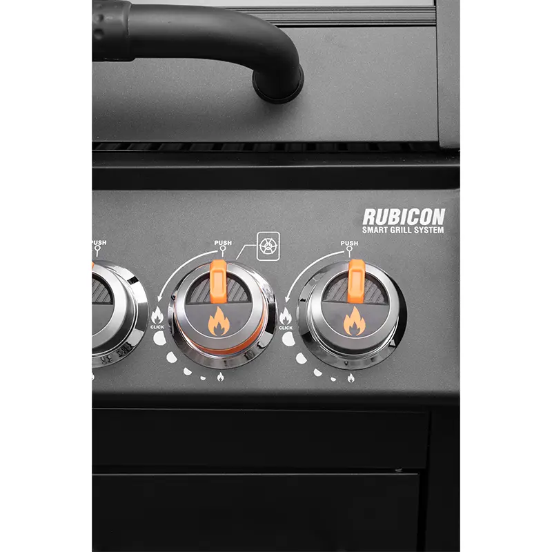 גריל גז רוביקון 4 שחור מט – עוצמה מקצועית בעיצוב נקי ואלגנטי.