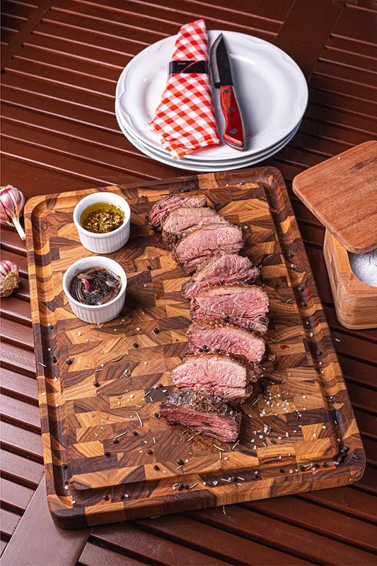 עשוי מעץ טרופי איכותי ובעל מראה טבעי, הקרש מעניק טאץ' כפרי ומסורתי – אידיאלי גם לחיתוך וגם להגשה של נתחי הבשר המשובחים ביותר.