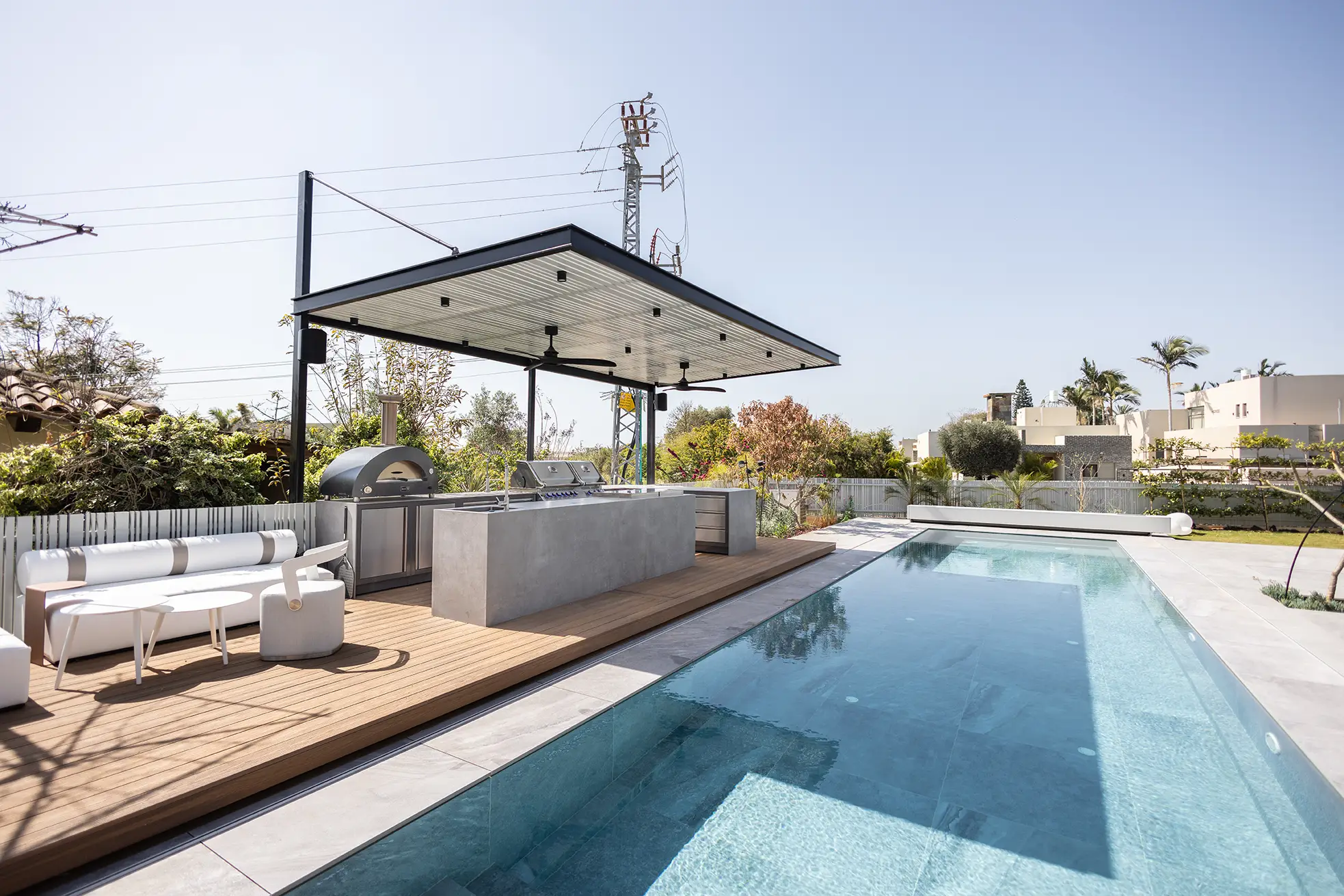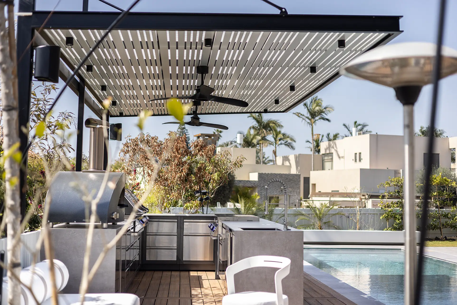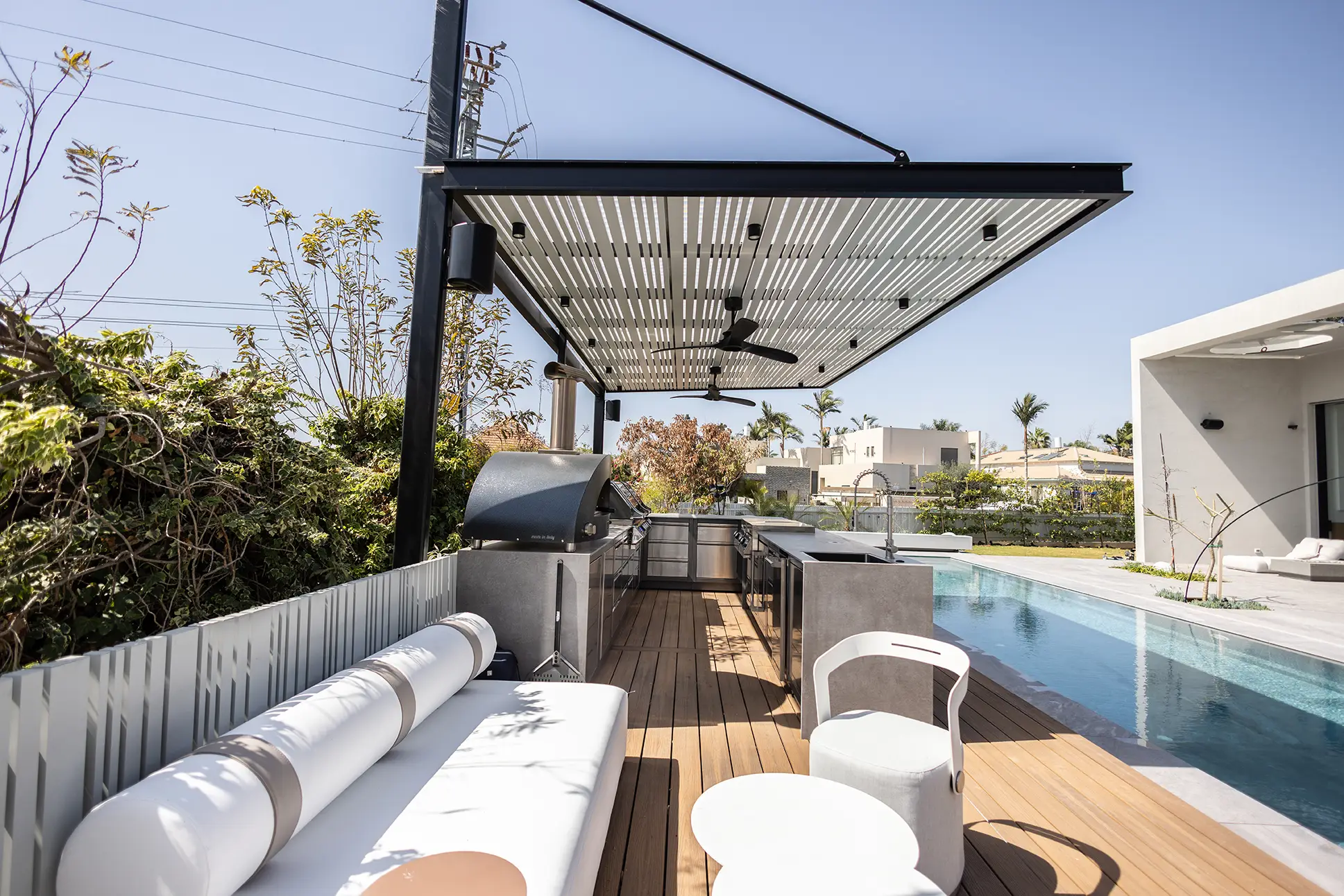 מטבח אינפינטי גדול ומרשים בגודל 5.4*2.46 מטר (צורת ר') + חזית 3.44 מטר