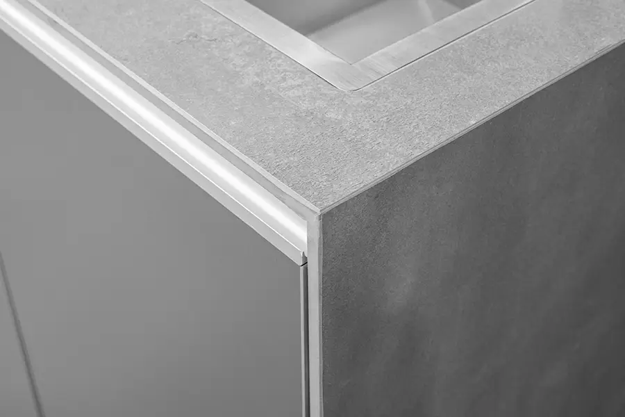 מטבח 2.1 מטרים הכולל משטח עליון ודפנות של חברת FLORIM וגב אלומיניום